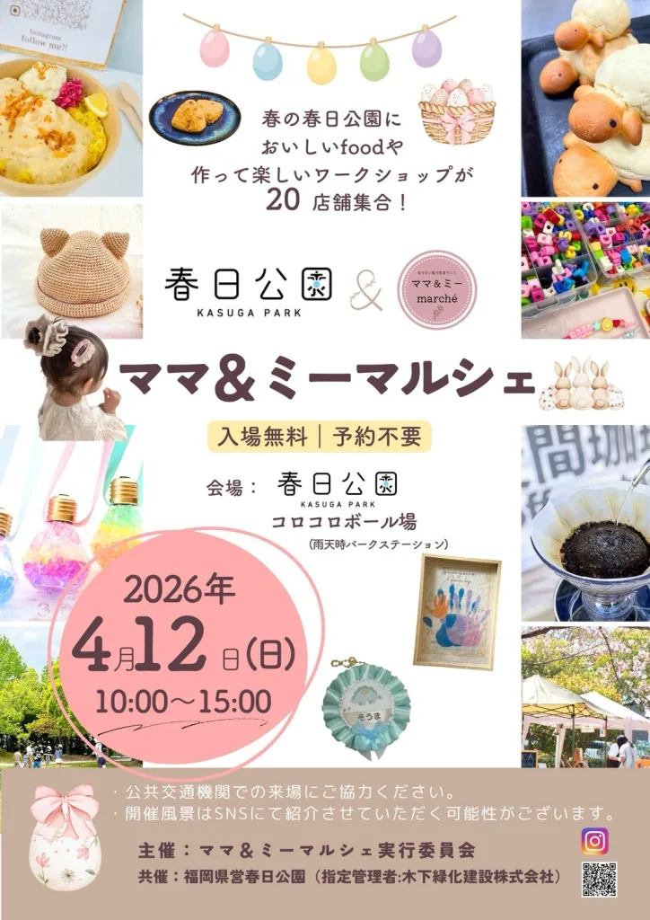 ママ&ミーマルシェ開催のお知らせ(4/12) 春日公園 お知らせ, トピックス, パークマネジメント 2026年3月16日 木漏れ日が心地よいおやこコロコロボール場にてママ&ミーマルシェを開催いたします。 お気軽にお立ち寄りください。 Post Views: 10